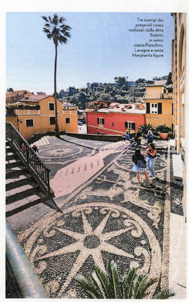 La famiglia Boletto, già agli inizi del Novecento riconosciuta dal Ministero dei Beni Culturali come “eccelsa artigiana di mattonelle in cemento e graniglia”, ha firmato alcuni dei più celebri sagrati della Liguria: da Portofino a Santa Margherita Ligure, fino alla Basilica di Santo Stefano a Lavagna.