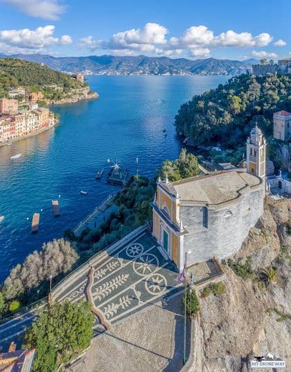 La piccola chiesa in stile romanico dedicata a San Giorgio è situata a picco sulla scogliera del promontorio in una posizione molto suggestiva ed è accessibile attraverso due semplici vie. Una volta sulla terrazza, si può godere di una impagabile vista sulla scogliera e sul borgo. Durante i secoli venne modificata diverse volte, la prima nel 1691, fino alla sua completa distruzione che avvenne durante la Seconda Guerra Mondiale. Gli abitanti del borgo eseguirono e finanziarono i lavori di riedificazione, curando l’impianto originario dell’edificio. Il risseu della salita di San Giorgio conduce al sagrato con bassi gradini delineati da mattoni rossi che formano un’affascinante cornice cromatica per i vari disegni che rappresentano la vegetazione con le tipiche foglie di acanto, rose dei venti, decori a stella e volute di grande impatto decorativo. , Il Risseu è realizzato con sassi bianchi e neri, semplice e articolato allo stesso tempo.